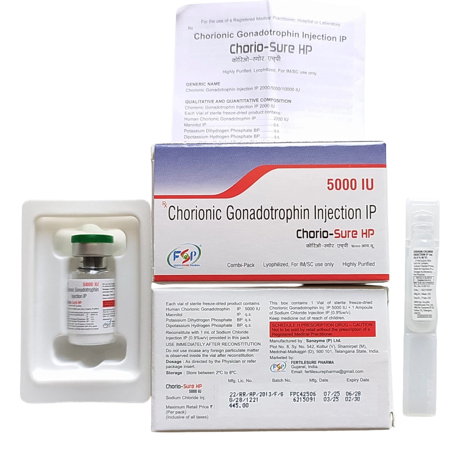 Chorionic Gonadotrophin Injection IP 5000 IU contains chorionic gonadotrophin to support fertility and hormone regulation, used under medical supervision.