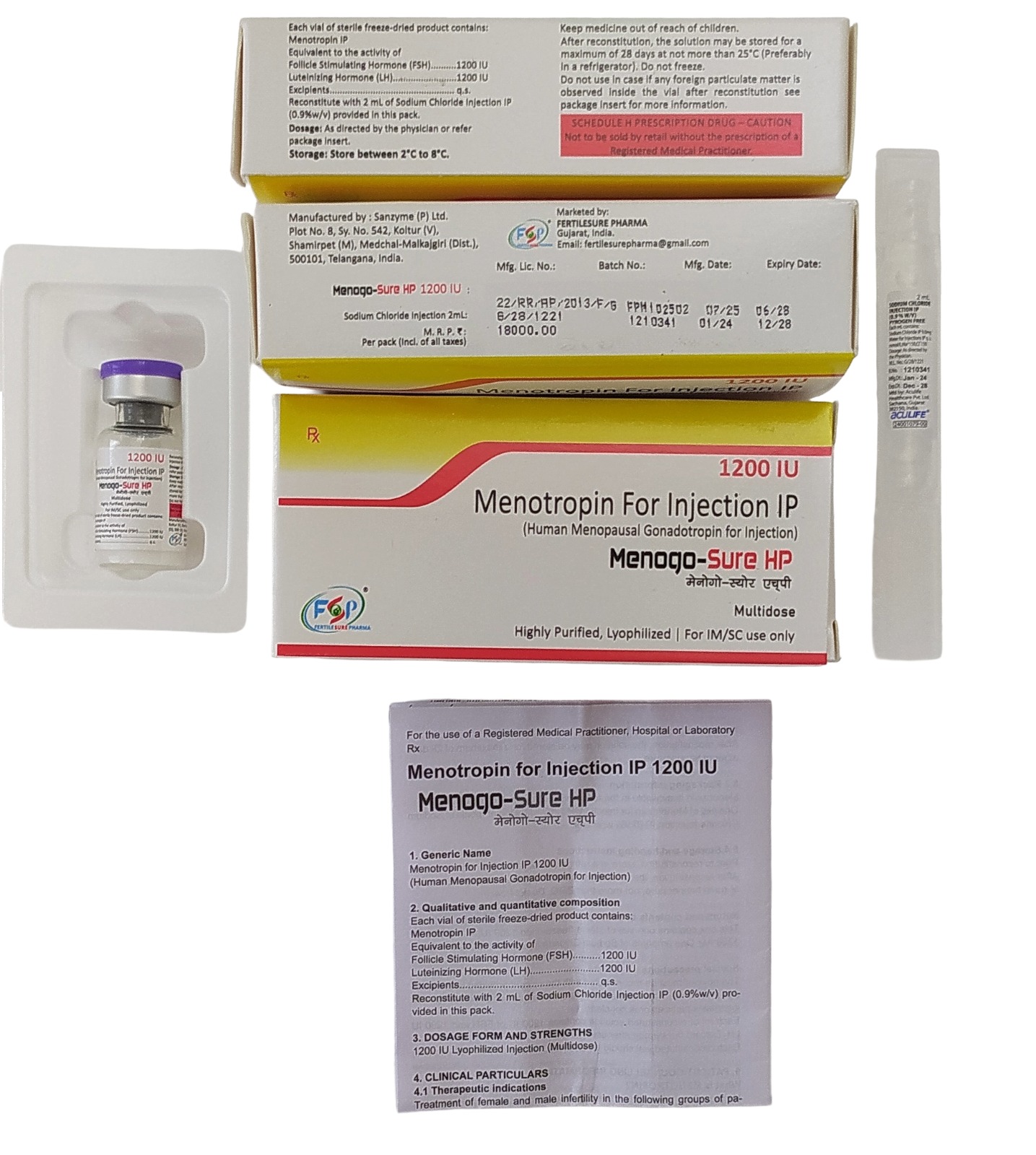 Menotropin For Injection IP 1200 IU is a hormonal preparation used in the management of certain reproductive and fertility-related conditions. It contains human menopausal gonadotropins that help support normal ovarian and testicular function. This medicine is commonly prescribed as part of assisted reproductive treatments and specific hormonal therapies, under the guidance of a qualified healthcare professional.